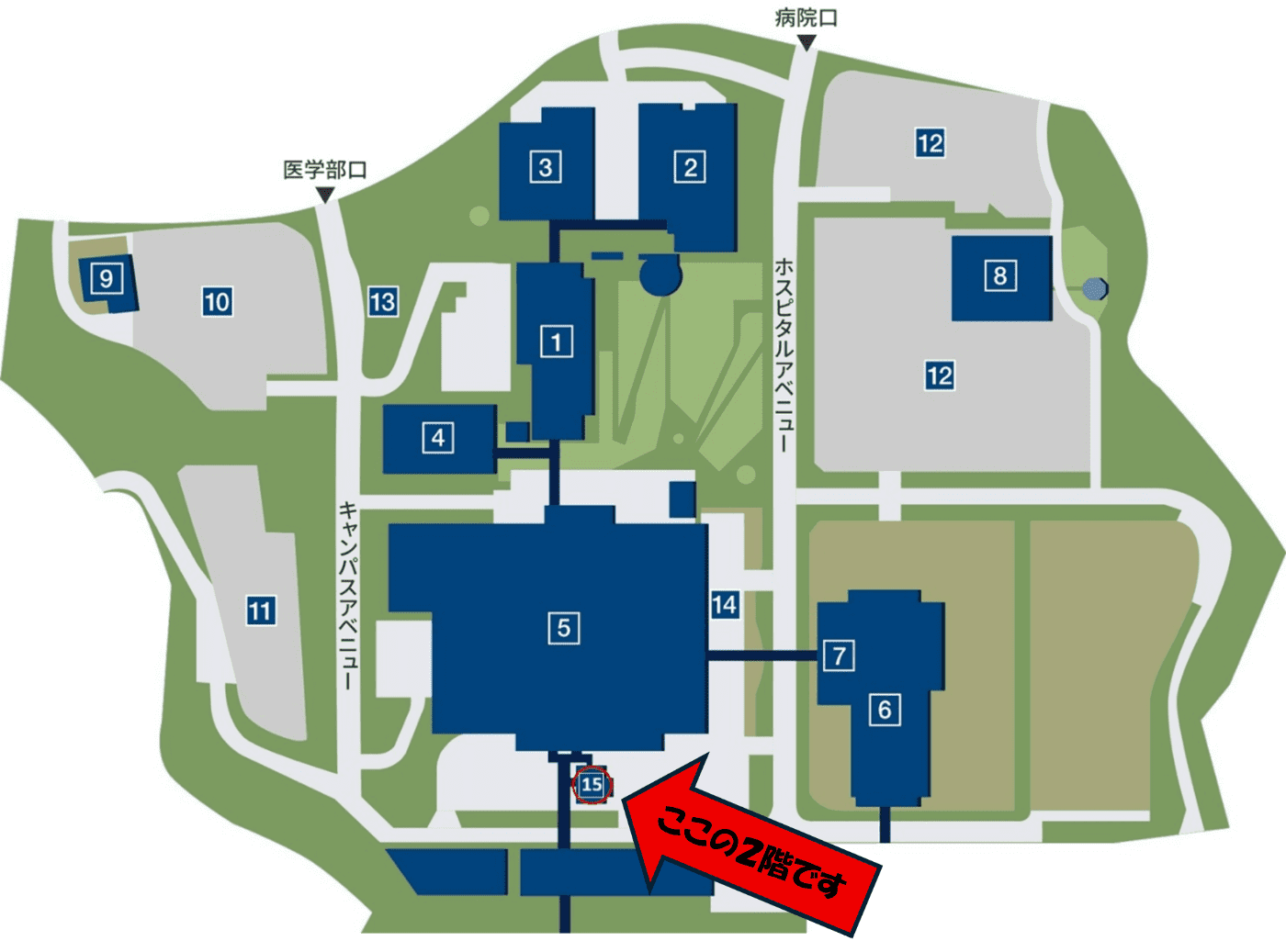 臨床研究総合支援教育センターは、病院棟に隣接している棟の2階にあります。